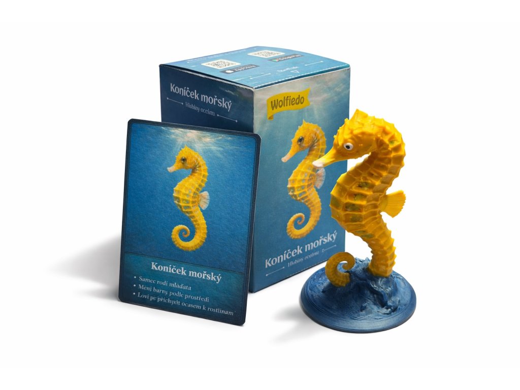 Koníček mořský – Hlubiny oceánu je vzdělávací pomůcka Wolfiedo, která propojuje reálný objekt, poslech a příběh. Dítě drží v ruce figurku koníčka mořského a pomocí NFC si v mobilní aplikaci Wolfiedo přehrává audio obsah, který ho vtahuje do světa oceánů.